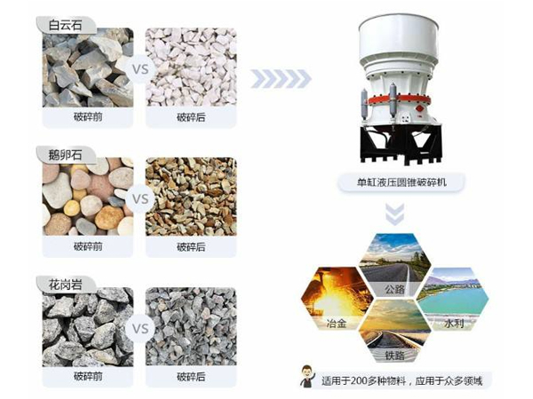 1、適用範圍廣。可破碎較為堅硬的岩石,同一主機通過更換襯板即可取得多種腔形,從而適應各種應用場合。中碎型擁有穩定而較大的給料口,用於物料的二級破碎(甚至精破)。