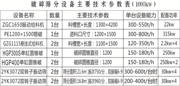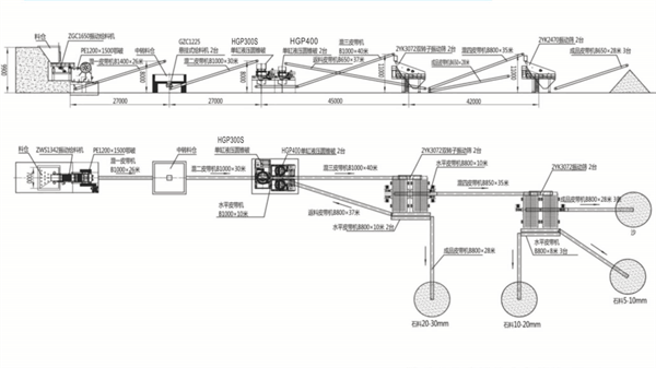 時產500-600噸硬岩骨料生產線方案平麵布置圖(生產線總功率: 1370kW)